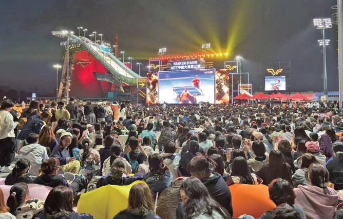10月3日,北京首钢园大满贯公园,不少球迷正在不雅看WTT的直播比赛。 新京报记者 王飞 摄
