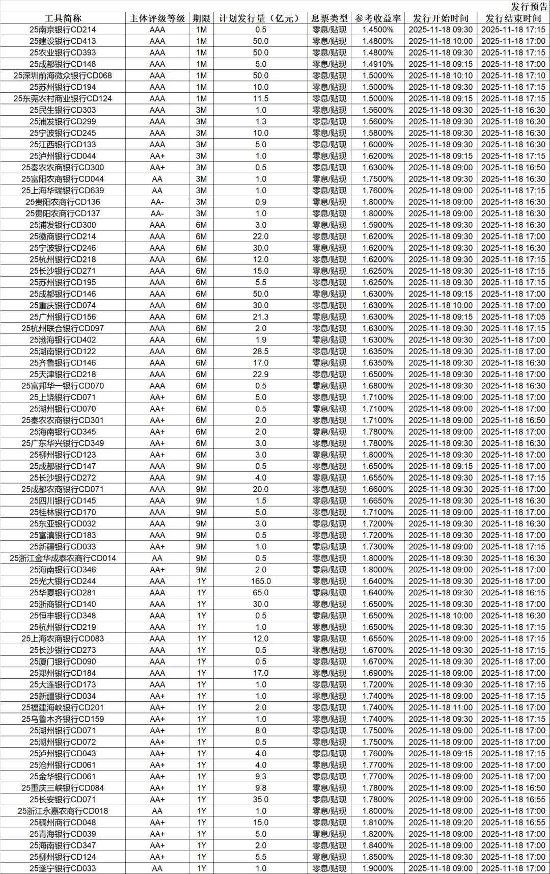 (三)同行存单刊行预报