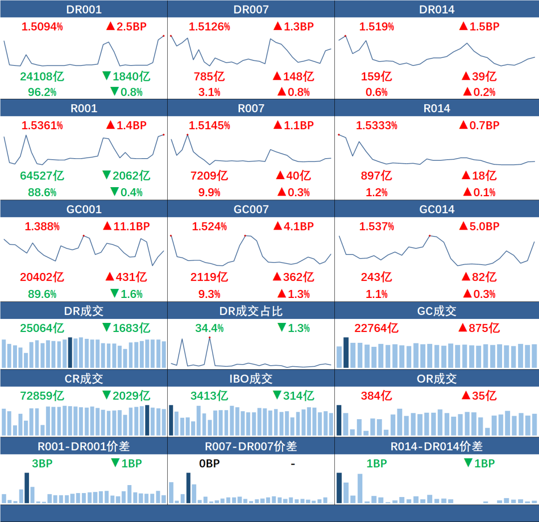 货币阛阓资金面偏紧。本日成交74909亿元,较前日减少2.1%。DR001加权1.51%,较前日上行3BP;DR007加权1.51%,较前日上行1BP。