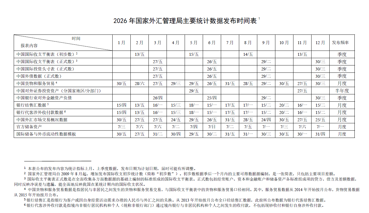 国度外汇贬责局公布2026年主要统计数据发布本事表🦄九游下载中心_九游游戏中心官网。