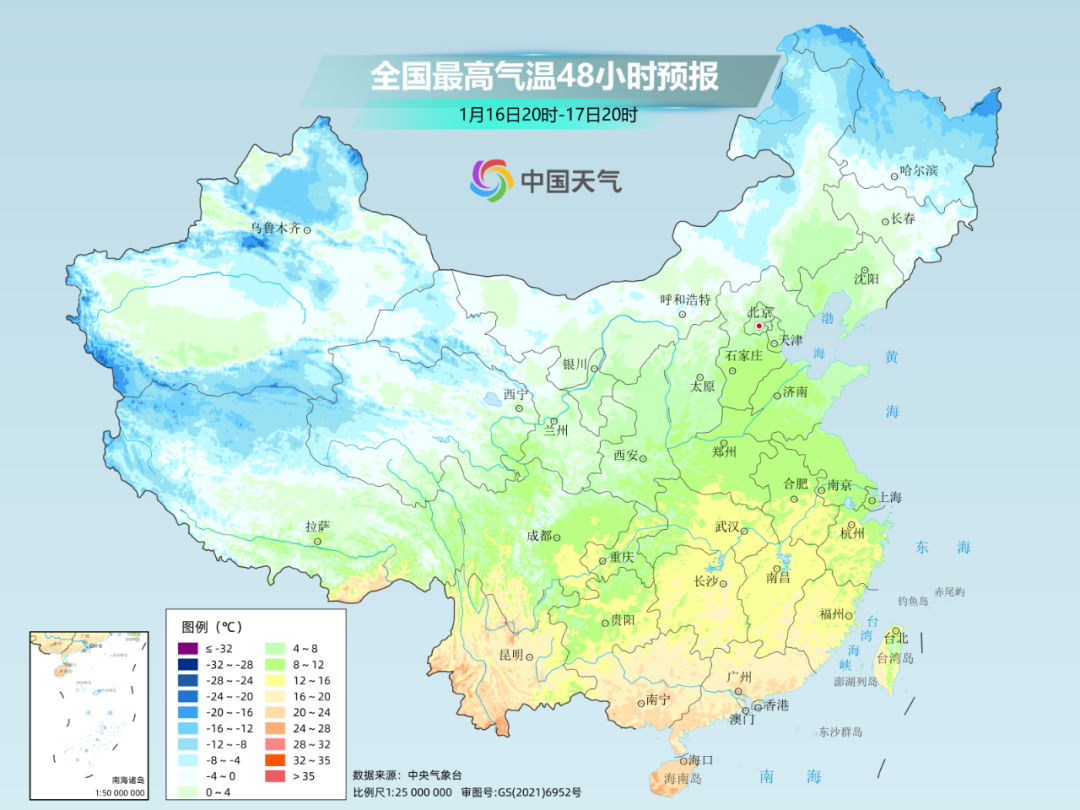 最高气温的回升尤为权贵。瞻望16日至21日,大部地区最高气温积聚升幅可达6-12℃;东北地区17日至18日,长江流域20日前后,最高气温将较长年同时偏高10℃以上。因此,不管是后天行将到来的四九,如故20日将迎来的大寒骨气,齐将以偏暖开场。